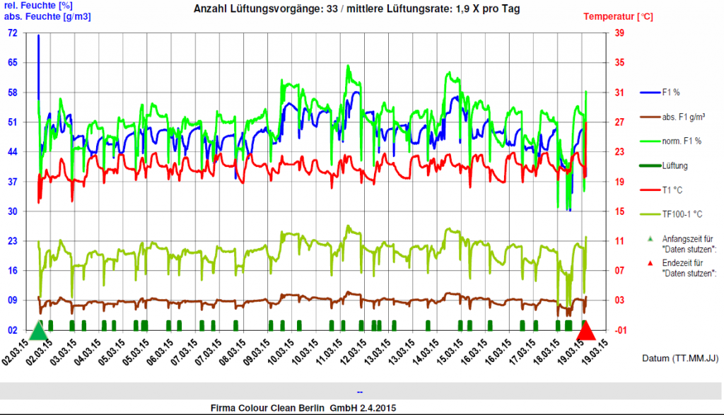 Der Aufwand für eine Klimalangzeitmessung ist beträchtlich. Aber manchmal geht es nicht anders. Natürlich besteht immer die Möglichkeit dass in dem Messzeitraum hervorragend geheizt und gelüftet wird.