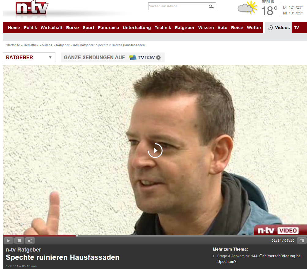 Colour Clean live mit n-tv. Spechte ruinieren Hausfassaden. Hier geht es zum Video